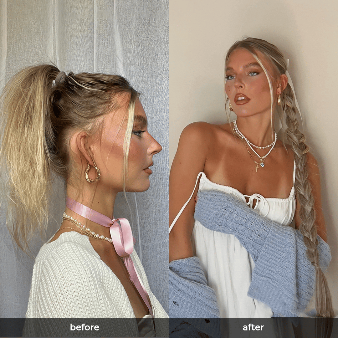 Our ponytail hair extensions are super versatile for endless days of hair happiness & creativity! Express yourself by effortlessly styling them in a variety of ways for any occasion.